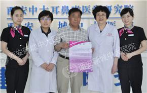 訾振兴今年60岁,家住铜川市。去年10月份,他的右耳就出现耳鸣,嗡嗡的响让他心烦意乱,在当地医院治疗后,又没有效果,这让他每天的心情都糟透了,有时恨不得拿把刀把自己的耳朵给剁掉!今年6月份,他的右耳突然一下子听力下降很厉害,什么都听不清楚了,这让他一下子慌了神,觉得自己要赶紧抓紧时间治疗好。经多方打探,他来到西安中大耳鼻喉医院,在原首席测听师、现西安中大耳鼻喉医院首席医生肖学和教授一番咨询询问和检查后,发现他耳膜内陷,邓教授以40余年的专业经验判断他耳鸣的原因在于鼻部,此后内窥镜检查发现他有比鼻甲肥大、鼻息肉等鼻部疾病,咽鼓管堵塞才导致了耳鸣,而他长期耳鸣又没有得到妥善的治疗,因而导致突发性的耳聋。经手术后,他的耳鸣有效消失,而用了“”一个疗程后,他的右耳听力有了明显提升,为了表达自己的感激,他给邓教授送来感谢信...【详细】